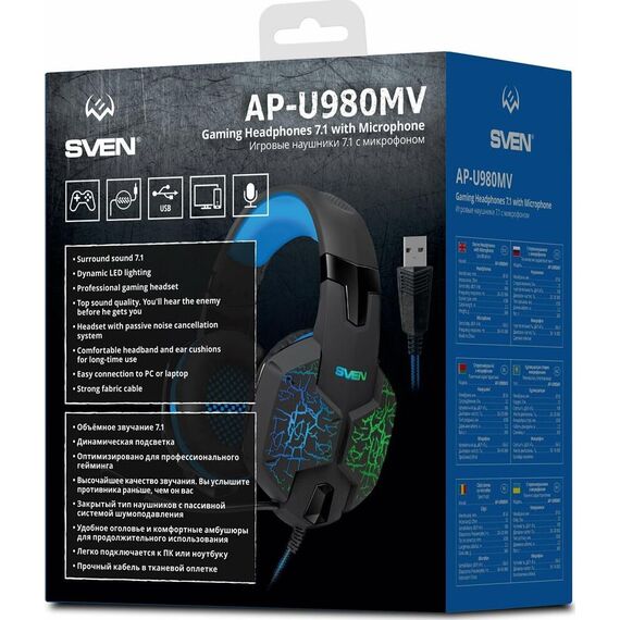 Геймерские наушники, чувствительность наушников, дБ 108 ± 3, чувствительность микрофона, дБ -58 ± 3, частотный диапазон наушников, Гц 20 – 20 000, частотный диапазон микрофона, Гц 30 – 16 000, мембрана, мм O 50, сопротивление, Ом 32, тип разъема - мини-джек (стерео) O 3,5 мм (4 pin) ,бъёмное звучание 7.1, динамическая подсветка, высочайшее качество звучания, длина кабеля - 2,2 м.