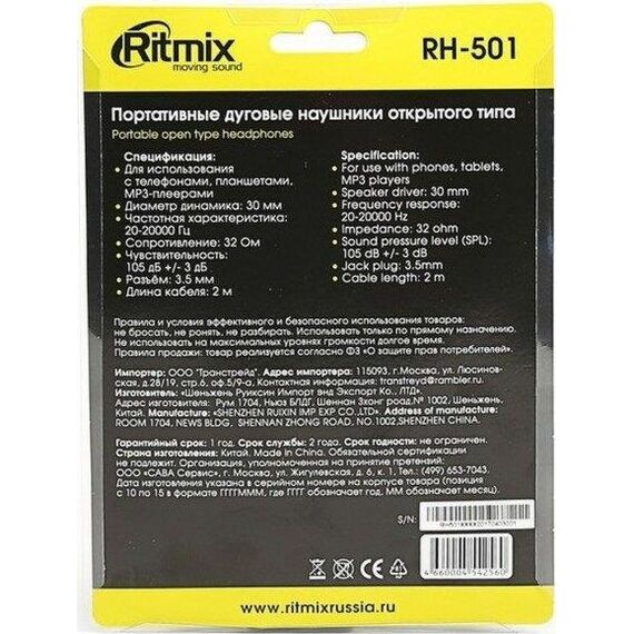 Наушники RITMIX RH-501