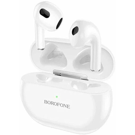 Беспроводные наушники с поддержкой Bluetooth V5.1, радиус действия до 10 м. Функции сенсорного управления: включение/остановка воспроизведения музыкальной композиции, принятие/отклонение входящего вызова, переключение треков, вызов Siri. Диапазон частот -20-2000 Гц, чувствительность 105 дБ, импеданс 32 Ом. Питание кейса - от порта Lightning 8-pin, емкость аккумулятора 150 мАч (кейс), 28 мАч (наушники). Время зарядки - 1 час, работы - 2 часа, в режиме ожидания - 3 месяца. Корпус наушников имеет защиту класса iPx4, сделан из пластика ABS. Наушники представлены в белом цвете, вес с кейсом 75 г.