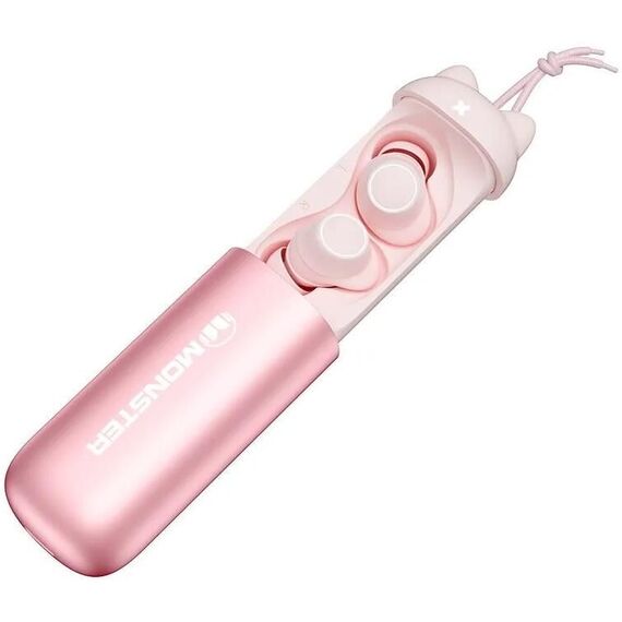 Наушники беспроводные TWS MONSTER Melody (MH22116), розовые. Необычный дизайн кейса, шнурок в комплекте, эргономичные наушники, великолепный фирменный звук, в комплекте 3 вставки и 3 накладки S/M/L.bluetooth v 5.3/chipset n/a/battery Earphones: 40mAh, Charging case 280mAh/water resistance IPX5/play time (50%) volume 6,5h