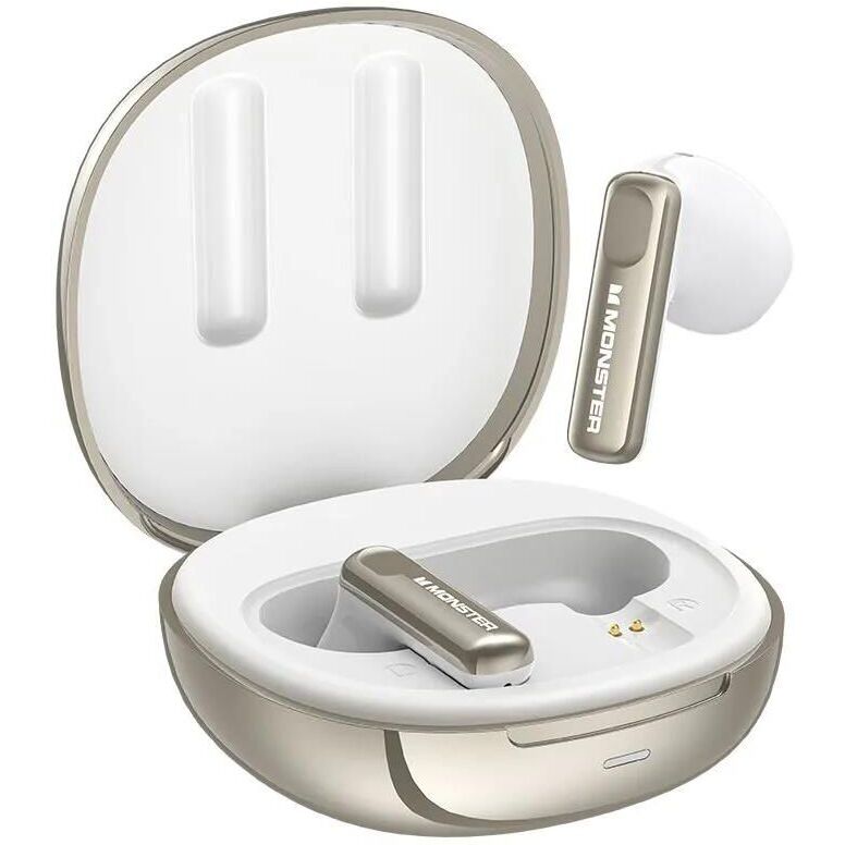 Наушники беспроводные TWS MONSTER N-Lite 209 (MH22215), серебристые. Стильный дизайн, великолепный звук, глубокий бас/bluetooth v 5.4/chipset JL7003D8/battery Earphones 30mAh, Charging Case 300mAh/water resistance IPX5/play time (50%) volume 5h