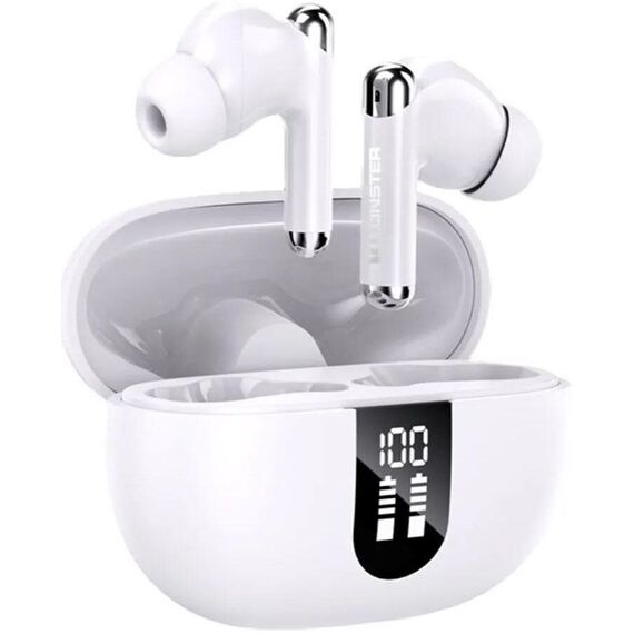 Наушники беспроводные TWS MONSTER N-lite 211 белые. Компактные, изящные внутриканальные наушники со сменными вставками и индикатором уровня заряда на кейсе. bluetooth v 5.4/chipset- JL6973D4/ battery Earphones 35mAh, Charging Case 350mAh/ play time (50% volume) 5h/water resistance - IPX5