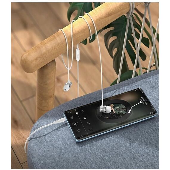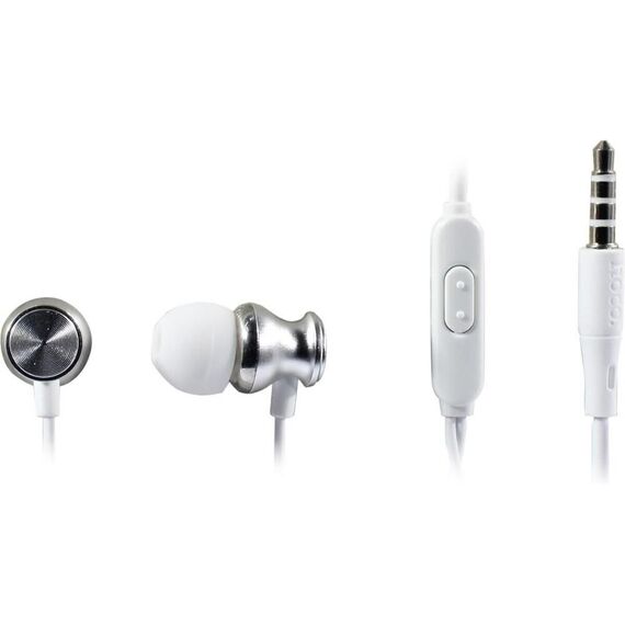 Стильные наушники Hoco M106 с микрофоном и кнопкой управления воспроизведением. Длина кабеля - 120 см. Оболочка кабеля - TPE, корпус наушников пластиковый. Наушники представлены в серебристом и сером цветах.