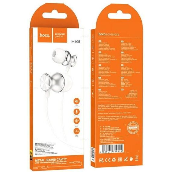 Наушники HOCO (6931474789815) M106 Silver