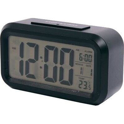 Электронные часы с функцией будильника, высота цифр 35 мм, размер дисплея 110*49 мм, подсветка дисплея, термометр, количество будильников * 1, повтор сигнала будильника, кнопочное управление, календарь, питание 3*ААА (не в комплекте), размер изделия: 137*77*44 мм, вес изделия: 0,148 кг.