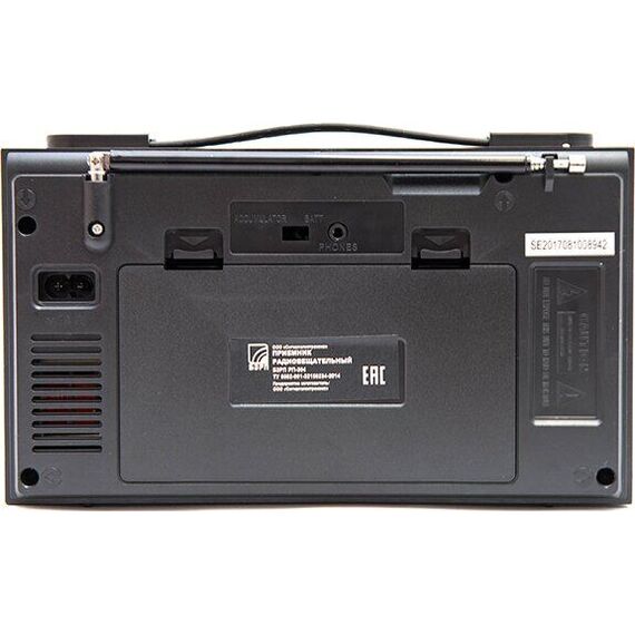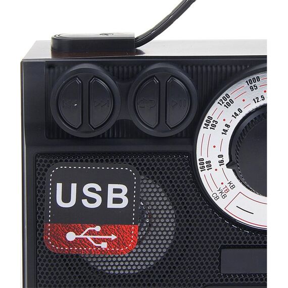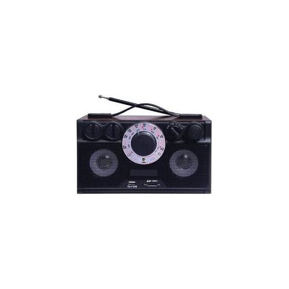 Тюнер аналоговый, УКВ/СВ/КВ диапазоны (УКВ 64-108МГц СВ 530-1600КГц КВ 7,2-16,0Мгц), 2 динамика (монозвук) мощностью Ф64mm/4Ом/3W*2шт, питание 220В, батарейки R20*4шт (не в компл.), размер 215*90*126мм, возможность воспроизведения с USB, SD, телескопическая антенна, разъем под наушники, ручка для переноски.