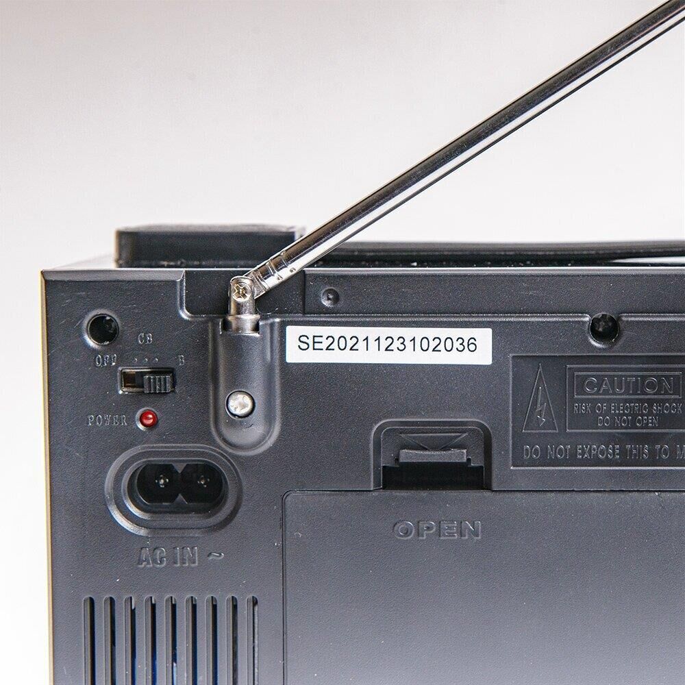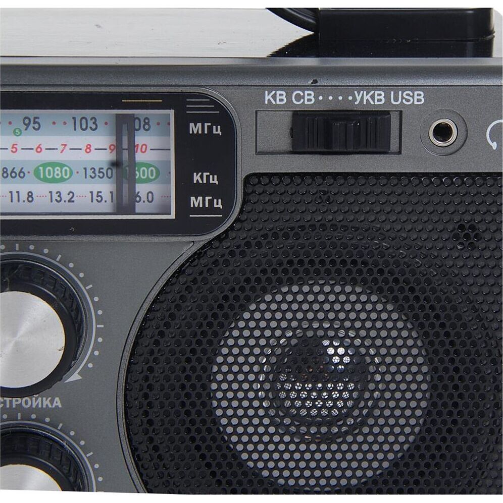 Тюнер аналоговый, УКВ/СВ/КВ диапазоны (УКВ 64-108МГц СВ 530-1600КГц КВ 8,0-16,0МГц), 2 динамика (монозвук) мощностью Ф64mm/4Ом/3W*2шт, питание 220В, батарейки R20*4шт (не в компл.), размер 220*135*135мм, возможность воспроизведения с USB, SD, телескопическая антенна, разъем под наушники, ручка для переноски.