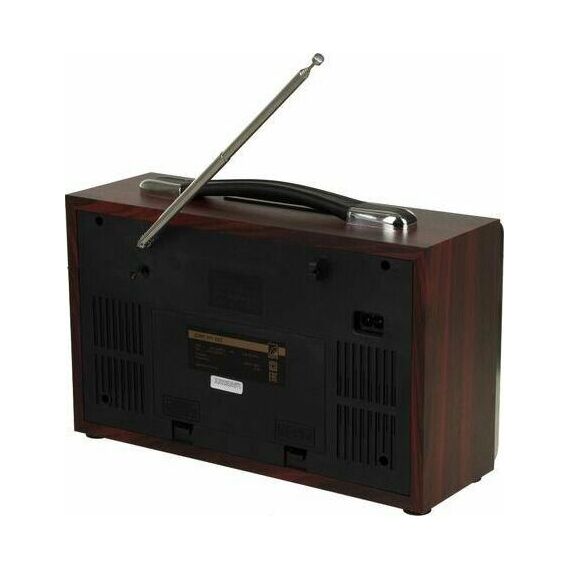 Тюнер аналоговый, УКВ/СВ/КВ диапазоны (УКВ 64-108МГц, СВ 530-1600КГц, КВ 5,9-18,0МГц), 2 динамика (стереозвук) мощностью динамиков Ф89mm/4Ом/3W*2шт, питание 220В, батарейки R20*4шт (не в компл.), аккумулятор 1400мА/ч, размер 275*105*170мм, Bluetooth, возможность воспроизведения с USB, SD, microSD (TF), AUX, разъем для внешнего питания 6В, телескопическая антенна, ручка для переноски.