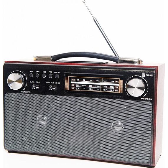Радиоприемник БЗРП РП-322 УКВ 64-108МГц, бат. 4*R20, 220V, акб 1400mA/h, USB/SD/microSD/AUX/Bluetooth, 2 динамика