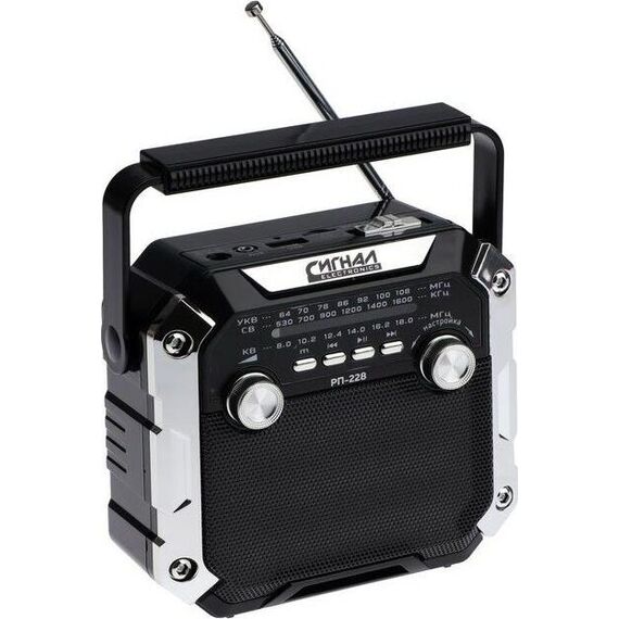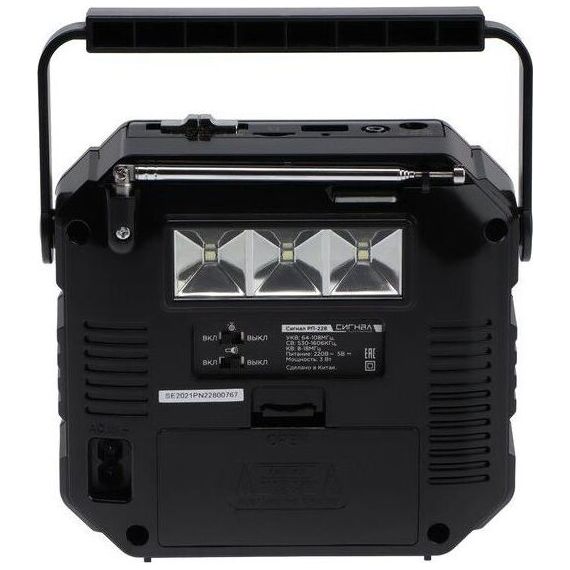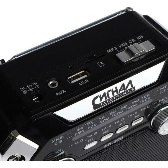 Радиоприемник СИГНАЛ РП-228 УКВ 64-108МГц, 220V, акб 1200mA/h, USB/microSD/AUX, светодиодный фонарь/дискосвет