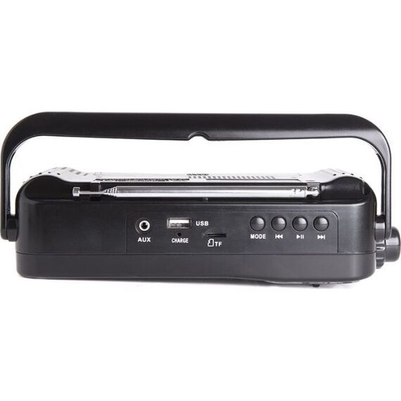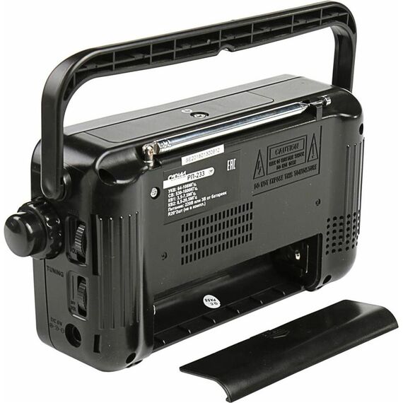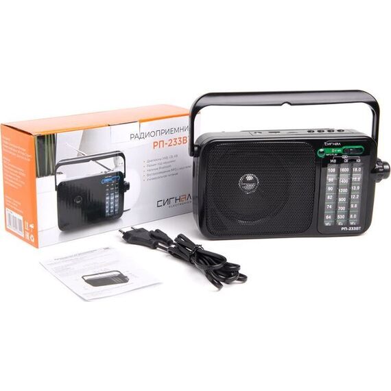 Аналоговый тюнер. УКВ/СВ/КВ диапазоны ( УКВ 64-108МГц СВ (530-1600)КГц КВ 8-16МГц), кол-во динамиков 1шт, монозвучание, динамик мощностью 89MM/8Ом/5W, питание 220V, батарейки R20*2шт, не в комплекте, вluetooth версия 4.2, возможность прослушивания с USB, возможность прослушивания с micro SD, возможность регулировки басов, размер 235x120х80мм.