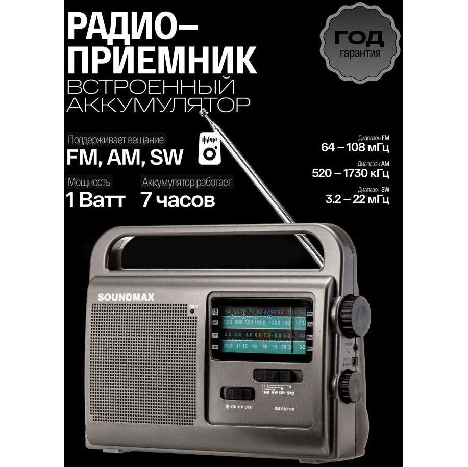 Радиоприемник SOUNDMAX SM-RD2110 темно-серый