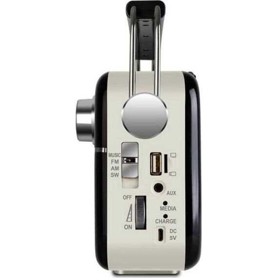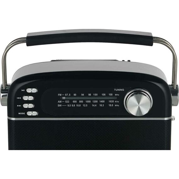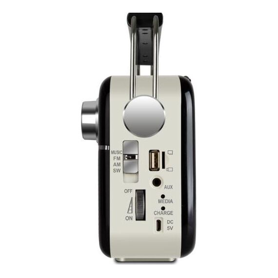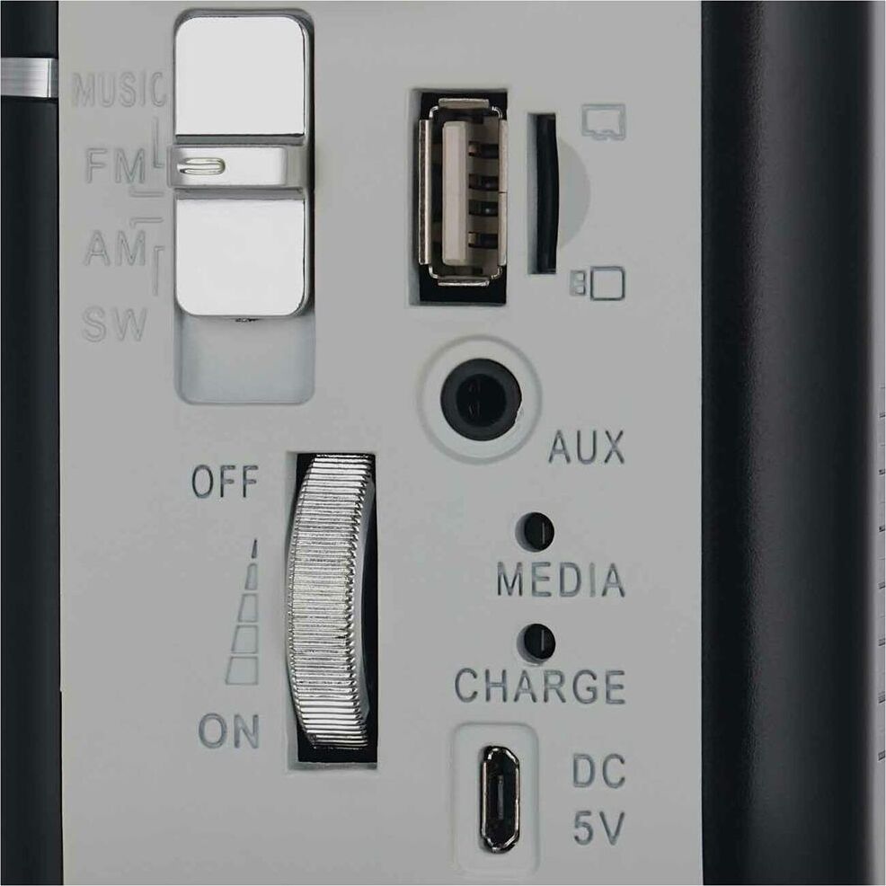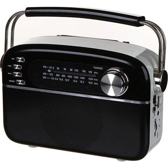 Портативная беспроводная акустическая система ,Bluetooth, выходная мощность (RMS) - 4Вт, частотный диапазон, Гц 100 – 12 000, размеры динамиков, мм - O 90, диапазон частот тюнера, МГц - 87.5 – 108, воспроизведение музыки с носителей памяти USB, microSD, источник питания - литий-ионный aккумулятор: 1200 мA · час, USB: DC 5 V, размеры изделия (мм) - 230х147х110.