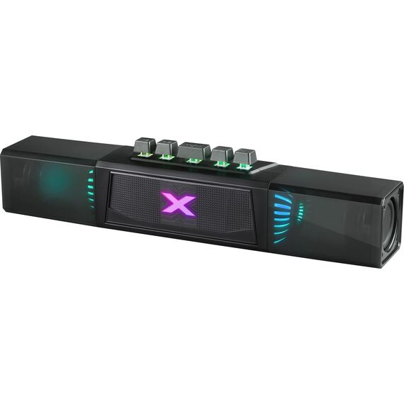 Портативная колонка-саундбар с функцией Bluetooth. Универсальное устройство подходит для ПК, телевизора и для использования вне дома. Встроенный аккумулятор ёмкостью 2400 мАч позволяет использовать динамик без привязки к источнику питания. Красивая подсве