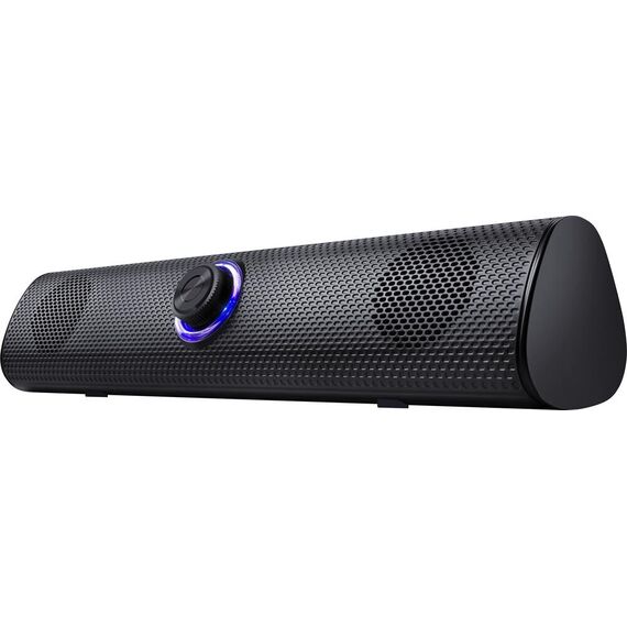 Компактный саундбар с нескользящими ножками под монитор вашего ПК. Регулятор громкости с приятной подсветкой удобно расположен на передней панели.