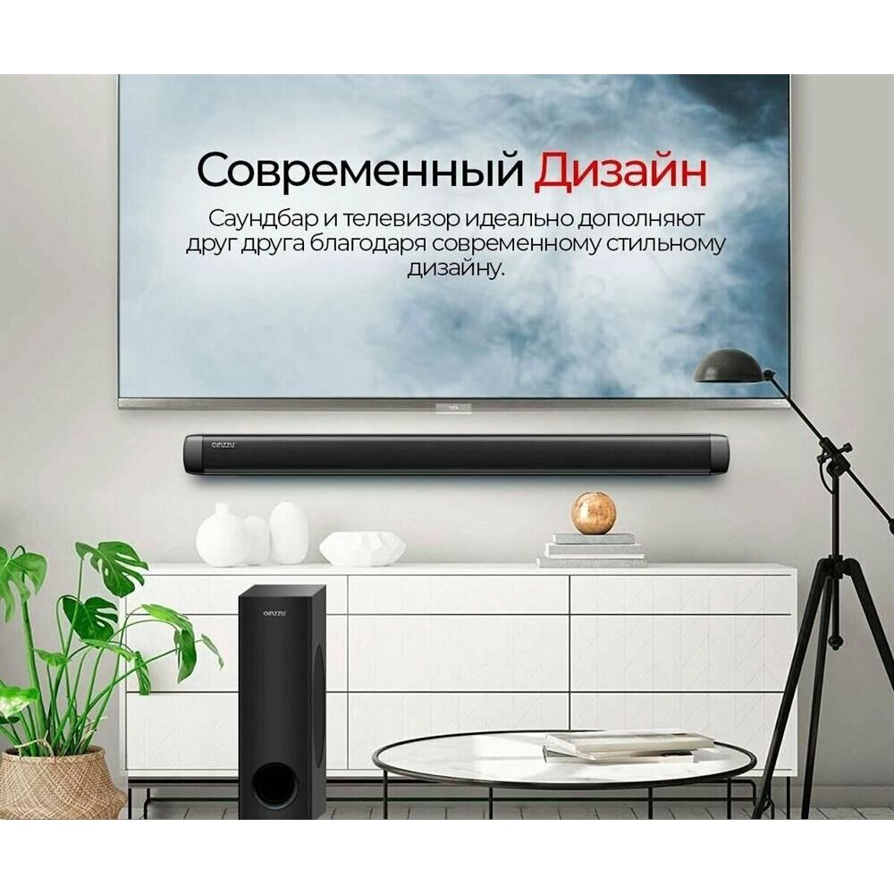 Выходная мощность общая (RMS) 100 Вт. Беспроводной сабвуфер 50 Вт. Вход HDMI ARC. Вход OPTICAL. Вход LINE IN 3,5 мм. Bluetooth: V5.1. Встроенный аудио-плеер: USB-flash. Диапазон воспроизводимых частот: 50 Гц - 15 КГц. Пульт дистанционного управления. Режимы MUTE, STANDBY. Эквалайзер: Music, Movie, Dialog. Регулировка громкости, высоких и низких частот. Комплект крепежа для настенного крепления.