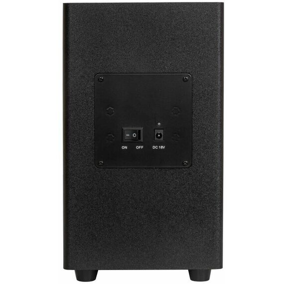 2.1-канальная звуковая панель. Совместимость с форматами: MP3/WAV/APE. Bluetooth 5.4 Version. Полнофункциональный пульт ДУ. HDMI. USB порт. Вход AUX. Максимальная выходная мощность: Динамики 100 Вт + Сабвуфер 180 Вт. Выходная мощность RMS: Динамики 20 Вт + Сабвуфер 40 Вт. Питание: DC 12 В, 2 А.