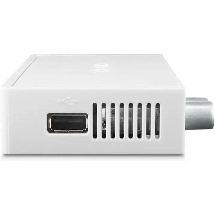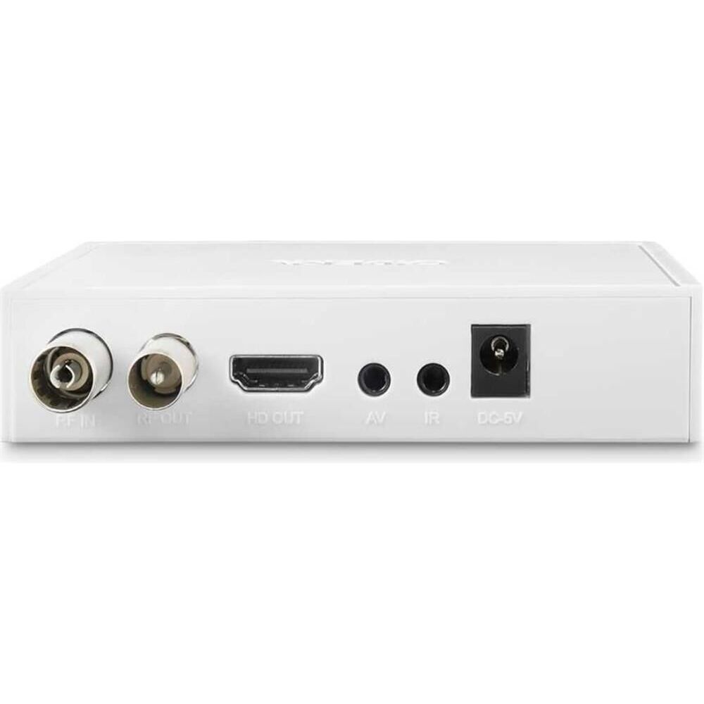 Приставка для цифрового ТВ CADENA CDT-2214SB предназначена для просмотра бесплатного цифрового эфирного телевидения высокого качества. Поддерживаемый стандарт DVB-T/T2. Высокочувствительный тюнер обеспечивает стабильное качество принимаемого сигнала. При подключении внешнего USB устройства можно записывать транслируемые телевизионные каналы, а так же воспроизводить мультимедийные файлы и изображения на телевизор. Приставка имеет поддержку функции родительского контроля. Меню, Пульт ДУ и руководство пользователя полностью на русском языке. На лицевой панели расположены дисплей и кнопки. На задней панели расположены антенные ВЧ вход и выход (петлевой); разъемы HDMI и AV; разъем для подключения внешнего ИК-датчика; гнездо подключения внешнего блока питания. На боковой панели расположен Порт USB 2.0. В комплектацию устройства включены кабель TRRS 3,5 мм – 3RCA, адаптер питания, пульт ДУ, батарейки, руководство пользователя и гарантийный талон.
