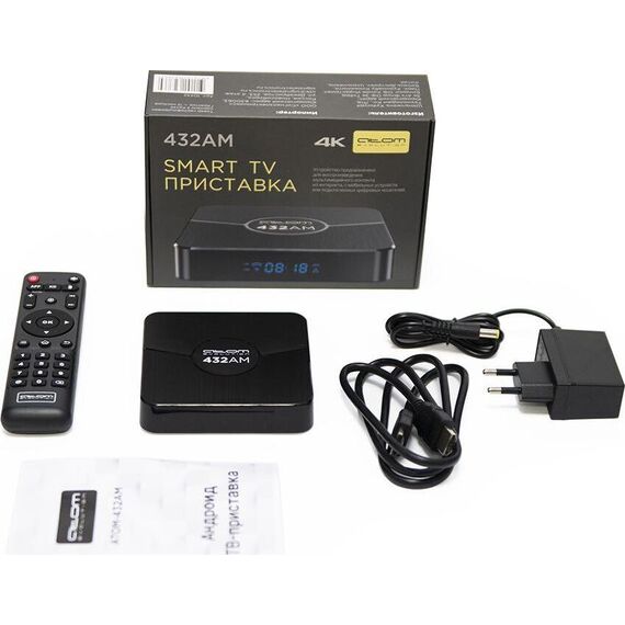 Приставка Смарт ТВ ATOM-432AM – это возможность превратить любой телевизор в Смарт и смотреть любимые фильмы и программы в отличном качестве. Приставка работает на базе операционной системы Android 11. Новинка превосходит предыдущие модели своим процессором – ЭТО AMLOGIC S905W2 QUAD CORE ARM CORTEX A35. Он выделяется повышенной производительностью и эффективностью работы. При этом потребляет меньше энергии, чем предшествующие модели. Это значит, что приставка имеет высокую производительность и улучшенную скорость обработки данных. Наслаждайтесь быстрым доступом к интересному контенту. Объем оперативной памяти 4 ГБ, операционная память 32 Гб. При помощи умной приставки ATOM-432AM можно пользоваться браузером и социальными сетями. Устанавливать дополнительные приложения из Google Play и даже игры. Для управления приставкой не требуется специальных навыков - интерфейс интуитивно понятен и прост, полностью на русском языке. Еще одно преимущество этой модели – встроенный Bluetooth. Вы можете синхронизировать через