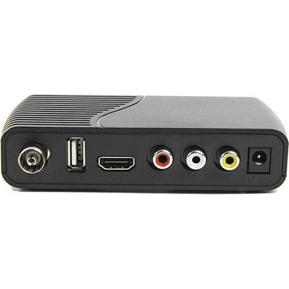 Ресивер эфирный цифровой, чипсет ALI3821, диапазон принимаемых частот: МВ 174-230МГц, ДМВ 470-862МГц, питание 5V, потребляемая мощность менее 10 Вт, пластиковый корпус, дисплей, размер 120*63*27 мм, поддерживаемые форматы мультимедиа: MKV, AVI, DIVX, VOB, FLV, MP4, MP3, WMA, JPEG, JPG, BMP, ASF, 3GP, разрешение видео: 480i /480P /576i /576P /720P /1080i /1080p@50(Full HD) /1080p@60(Full HD), телетекст, субтитры, формат изображения: авто, 4: 3, 16: 9, автопоиск и ручной поиск каналов, запись программ по таймеру, режим отложенного просмотра, часы, функция записи телепередач, функция "Родительский контроль", управление каналами: сортировка, пропуск, блокировка, перемещение, переименование, телегид на 7 дней, цифровое радио, поддержка DolbyDigital, поддержка WI-FI, функция удаления каналов, функция создания списка любимых каналов, разъемы на корпусе: антенный вход, антенный выход, композитный аудио-видео выход (RCA), HDMI-разъем, USB-разъем, разъем для подключения внешнего блока питания.