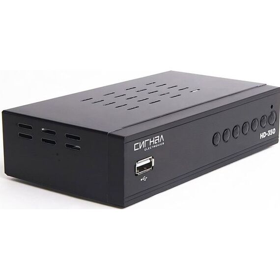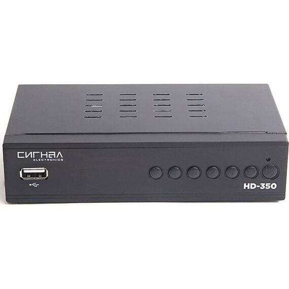 Особенность этого ресивера в возможности подключения к интернету с помощью LAN порта. Можно напрямую подсоединить кабель, установив сетевое соединение. Также в приставке есть IR разъем, который позволяет подключить выносной инфракрасный датчик для управления с ДУ-пульта ресивером, скрытым из виду. На ресивере расположены следующие разъемы: антенный вход, 2 USB-разъема, HD OUT, композитный аудио-видео выход, IR, LAN, разъем для подключения внешнего блока питания. Также на переднем дисплее есть кнопки управления громкостью, М - выход в меню и кнопка ОК.HD-350 оснащен чипсетом GX6702, поддерживает диапазон частот 174-862МГц. Поддержка DOLBY DIGITAL. Также вы можете наслаждаться видео с разрешением до 1080p.Корпус из металла, размер 148*80*35 мм. Рабочая мощность составляет 7,5Вт, входное напряжение 220В 50ГЦ, БП 5В 2А.Товар сертифицирован. В комплектацию HD-350 входит: ресивер цифровой, обучаемый пульт ДУ, э/п