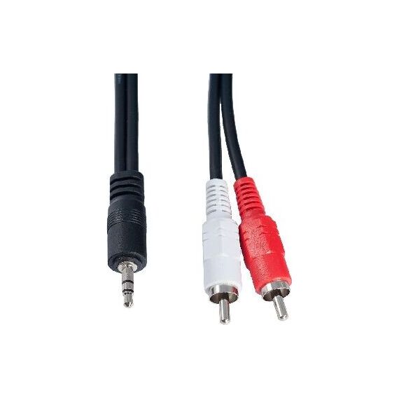 Межблочный кабель. Разъемы - JACK 3.5 мм вилка — 2xRCA вилка. Предназначен для передачи аналоговых стереозвуковых сигналов и аналогового композитного видеосигнала между аудио и аудио-видео устройствами или их компонентами. Длина - 2,0 м.