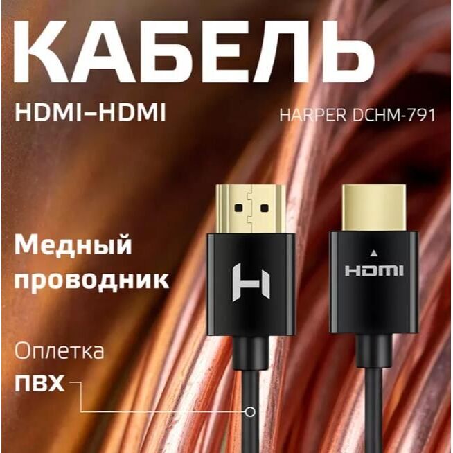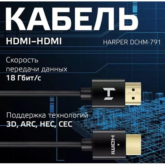 Кабель HDMI HARPER DCHM-791 HDMI 1м металлический корпус коннектора