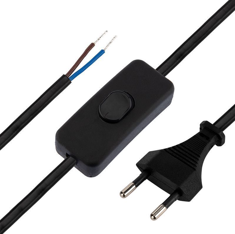 Сетевой шнур с выключателем предназначен для подключения бытовых приборов, осветительной техники и т. д. Шнур состоит из провода ШВВП сечением 0,75 мм2, укомплектованного литой неразборной плоской вилкой (Евро), номинальным током 4 А, с подготовленными (зачищенными и лужеными) контактами, посередине провода расположен выключатель в корпусе из ABC пластика. Напряжение: 250 В Номинальный ток: 4 А Сечение проводников: 2х0,75 мм2 Длина шнура: 1,8 м Цвет: черный Переключатель: есть