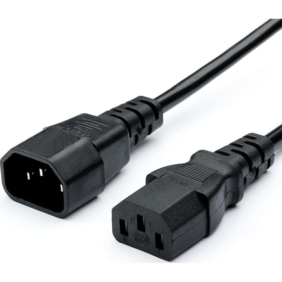 Силовой кабель, удлинитель, C14 (m)-C13 (f), сечение 0,75мм, длина кабеля 1,8 метра, ПВХ, цвет черный