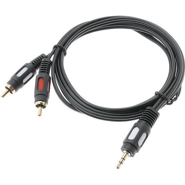 Предназначен для передачи аналогового аудиосигнала и широко применяется для видео- и аудиосистем. С одной стороны шнура располагается штекер разъема 3.5 Stereo, а с другой — 2 штекера разъема RCA (традиционный стандарт для аналоговой видео- и аудиотехники). С его помощью можно разнести двухканальный звук (стерео) на две точки воспроизведения. Разъемы выполнены из легкого и прочного пластика. Контакты штекеров покрыты слоем золота, нанесенного по технологии вакуумного напыления для улучшения качества передачи сигнала. 1.5 метра.