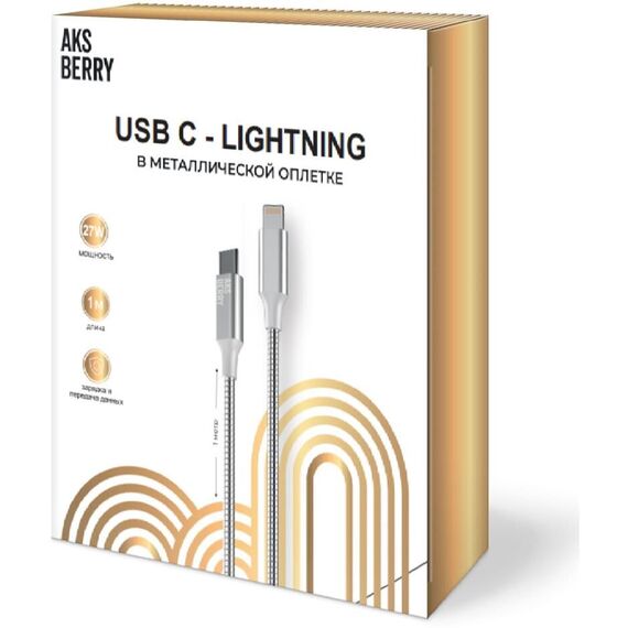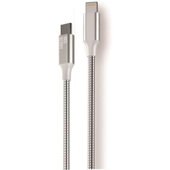 Дата-кабель USB C to Lightning AKSBERRY (6900288570018) X161 Spring USB C to Lightning 9V/3A, 27W 1м в металлической оплетке, серебристый