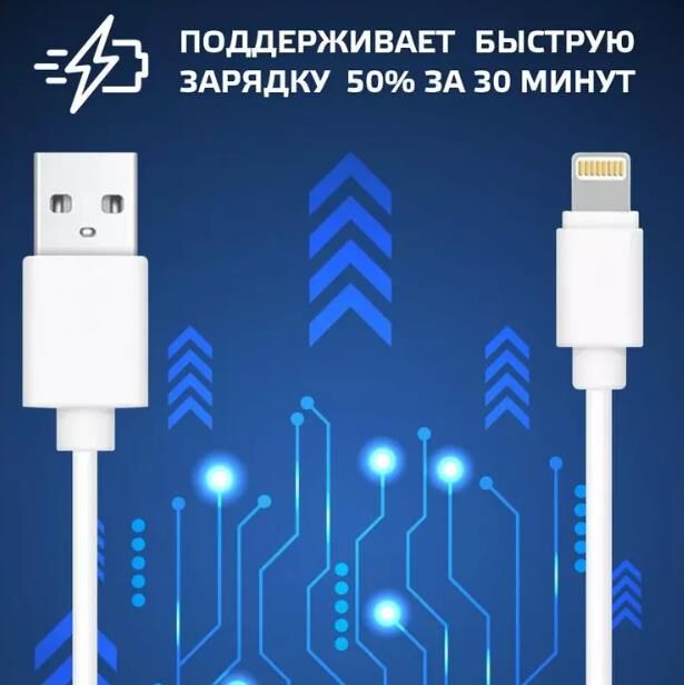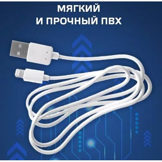 Тип кабеля: USB кабель. Разъем 1: USB A (m). Разъем 2: Lightning (m). Особенности: поддержка быстрой зарядки 50% за 30 минут. Длина кабеля : 1 м. Материал оплетки: ПВХ. Проводник: Медь. Цвет: белый.