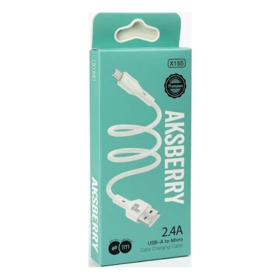 Кабель AKSBERRY (6972969383224) X155 для MicroUSB 1м 2.4A белый