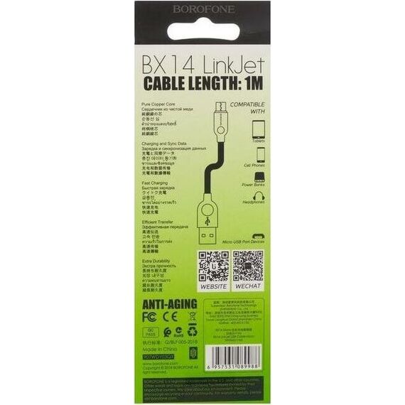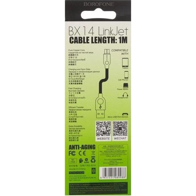 Кабель microUSB BOROFONE (6957531089988) BX14 USB-microUSB 2.4A 1м белый