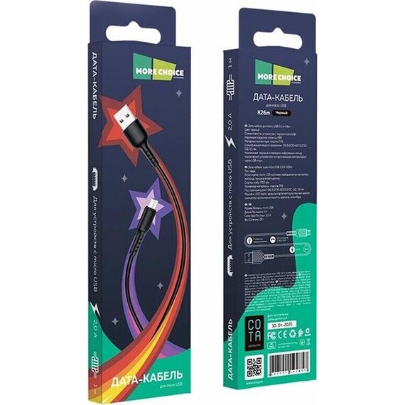 Кабель MORE CHOICE (4627151192857) K26m USB 2.0A для micro USB - 1м Black