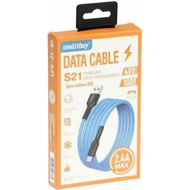 Кабель SMARTBUY (iK-12-S21bb) S21 MicroUSB синий, 2.4 А, сил., 1 м
