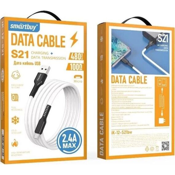 Кабель SMARTBUY (iK-12-S21bw) S21 MicroUSB белый, 2.4 А, сил., 1 м