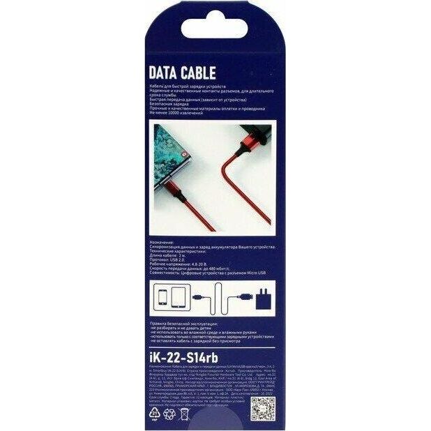 Кабель SMARTBUY (iK-22-S14rb) S14 MicroUSB красный/черн., 3 А, 2 м