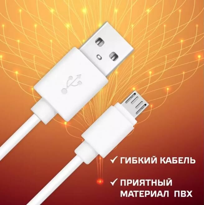 Тип кабеля: USB кабель. Разъем 1: USB A (m). Разъем 2: Micro USB (m). Длина кабеля : 1 м. Материал оплетки: ПВХ. Проводник: Медь. Цвет: белый.