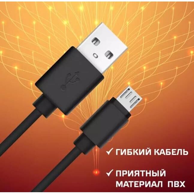 Тип кабеля: USB кабель. Разъем 1: USB A (m). Разъем 2: Micro USB (m). Длина кабеля : 1 м. Материал оплетки: ПВХ. Проводник: Медь. Цвет: черный.