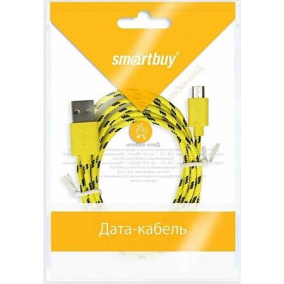 USB кабель SMARTBUY (iK-12n yellow) USB - MICRO USB нейлон 1.м желтый