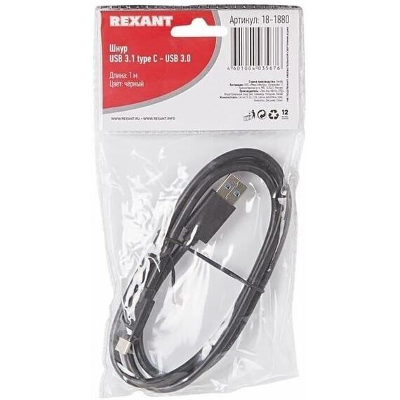 Дата-кабель REXANT (18-1880) Шнур USB 3.1 type C (male)-USB 3.0 (male) 1 м