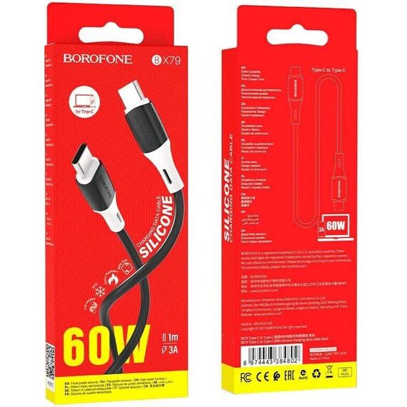 Кабель BOROFONE (6974443384802) BX79 силикон 1м USB 3.0A PD 60W для Type-C Type-C Black 1 м