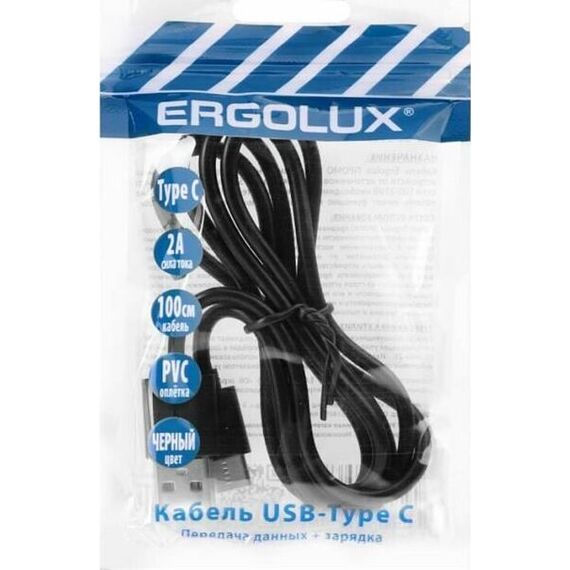 Кабель ERGOLUX (15089) ELX-CDC02P-C02 USB-Type C 1м черный