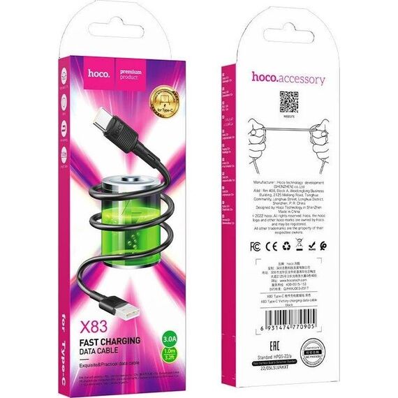 Кабель HOCO (6931474770905) X83 Type-C (m) 1.0m - черный