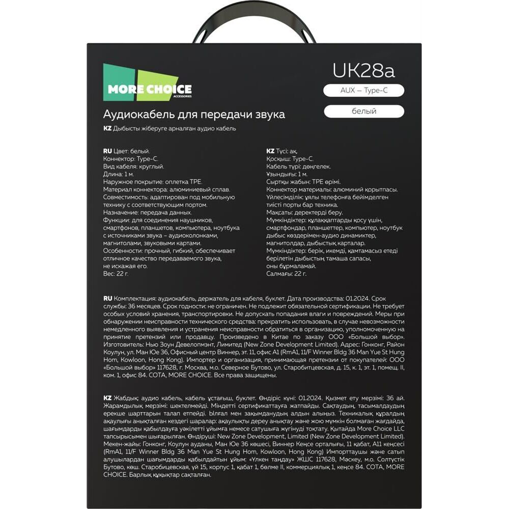 Кабель MORE CHOICE (4610196409851) UK28a AUX 3.5mm Type-C 1м White