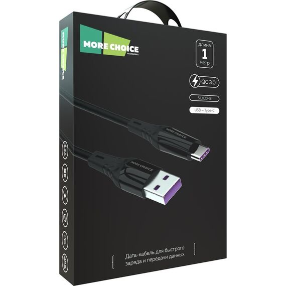 Кабель MORE CHOICE (4620202550033) K35a USB 3.0A для Type-C силикон 1м Black