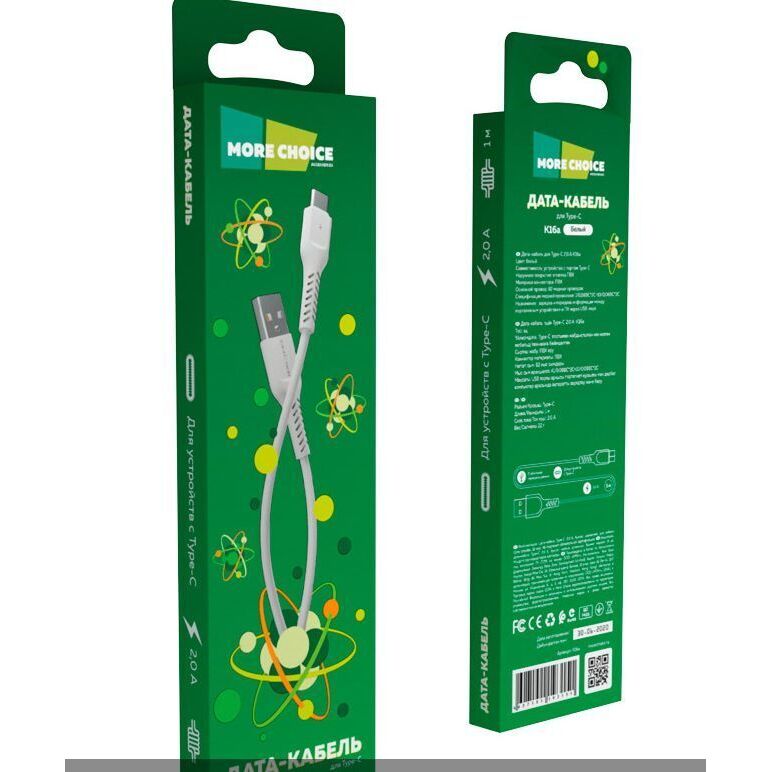 Кабель MORE CHOICE (4627151193151) K16a USB (m)-Type-C (m) 1.0м, белый