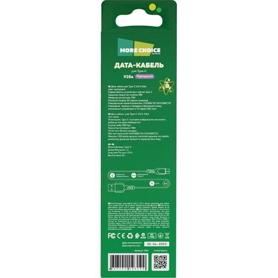 Кабель MORE CHOICE (4627151193175) K16a USB (m)-Type-C (m) 1.0м - красный