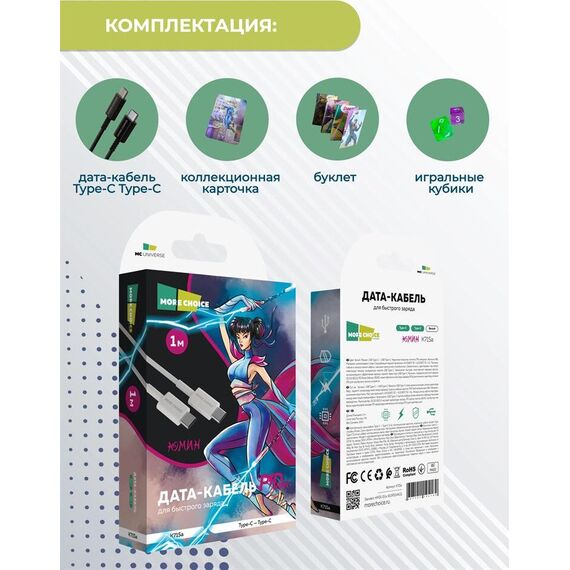 Кабель MORE CHOICE (4627151194165) K71Sa Type-C(m)-Type-C (m) 3.0А 1.0м - черный